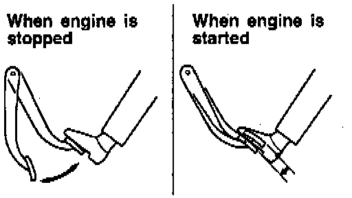 3. With the engine running, step on the brake pedal and then stop the engine. Hold the pedal depressed for 30 seconds. If the pedal height does not change, the booster is in good condition. If the pedal rises, the booster is defective. Brake booster performance is satisfactory if it passes all three operating tests.