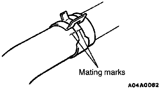 (2) Align the mating mark on the radiator hose and water outlet fitting or water inlet fitting.