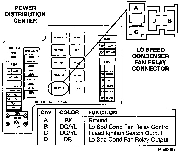 Power Distribution Center, Hi Speed Condenser Fan Relay Connector: