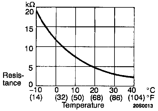 INSPECTIONWhen the resistance value between the sensor terminals is measured under two or more temperature conditions, the resistance value should be close to the values shown in the graph.