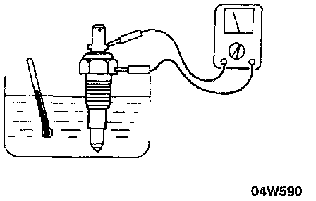 4. If within the standard value, the sensor is OK. Re-install it, then check the engine coolant temperature gauge. If not within the standard value, replace it. Resistance Inspection