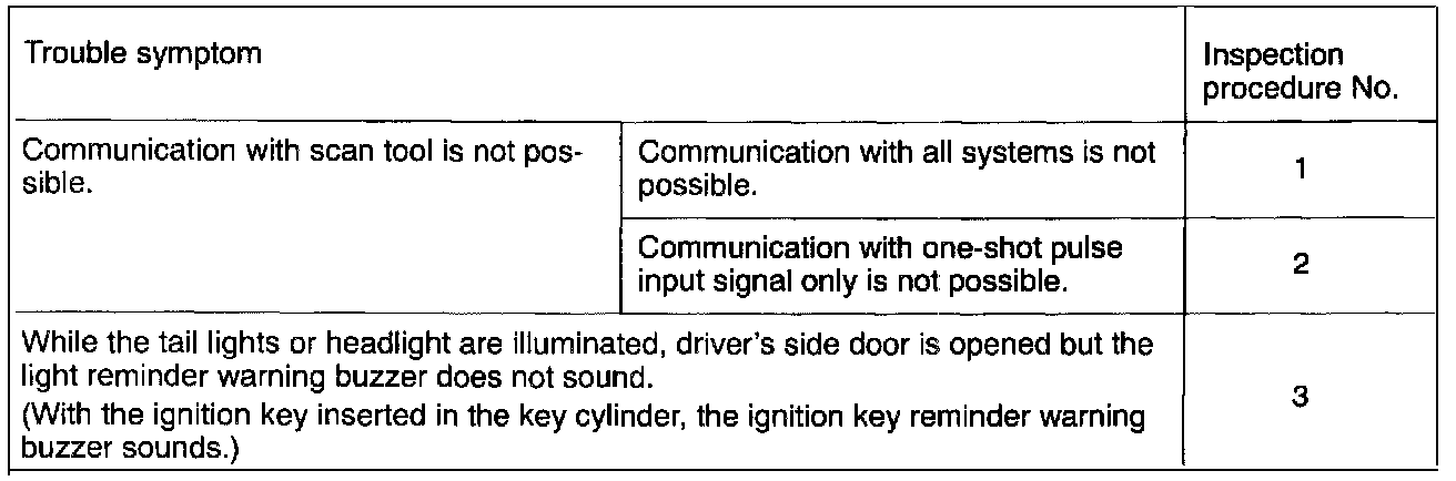 Inspection Chart For Trouble Symptoms