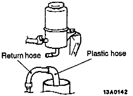 3. Connect a plastic hose to the return hose, and drain the oil into a container.