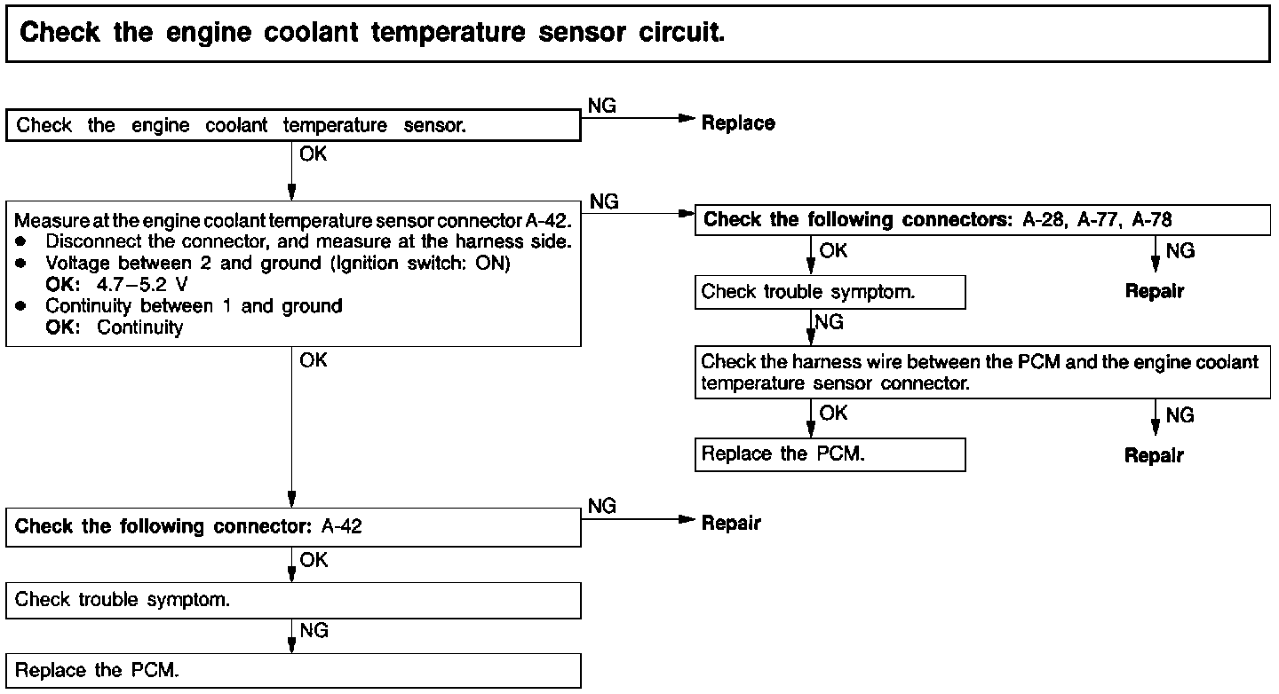 Check the engine coolant temperature sensor circuit.