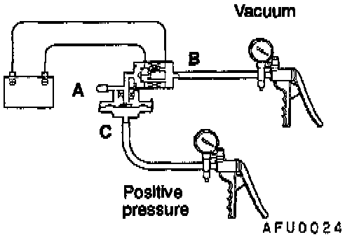 7. Turn ON and OFF the negative battery terminal side jumper wire and apply vacuum and positive pressure to check the air tightness.