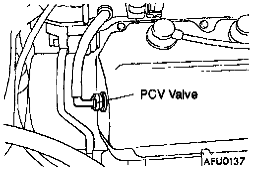 Fresh air is sent from the air cleaner into the crankcase through the breather hose, to be mixed with the blow-by gases inside the crankcase. The blow-by gas inside the crankcase is drawn into the intake manifold through the PCV valve.