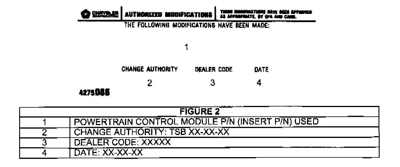 10. Type the necessary information on the Authorized Software Update Label" p/n 04669020 (Figure 1). Attach the label to the PCM and cover the label with the clear plastic overlay.