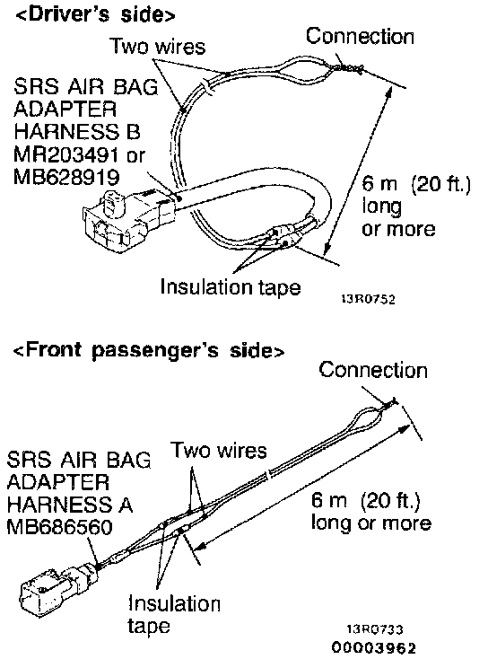 3. Connect two wires, each six meters (20 feet) long or more, to the two leads of SRS AIR BAG ADAPTER HARNESS B
