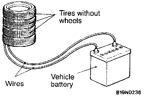 3. Place three old tires, without wheels, on top of the tire secured to the air bag module, and secure all tires together with ropes (4 locations).