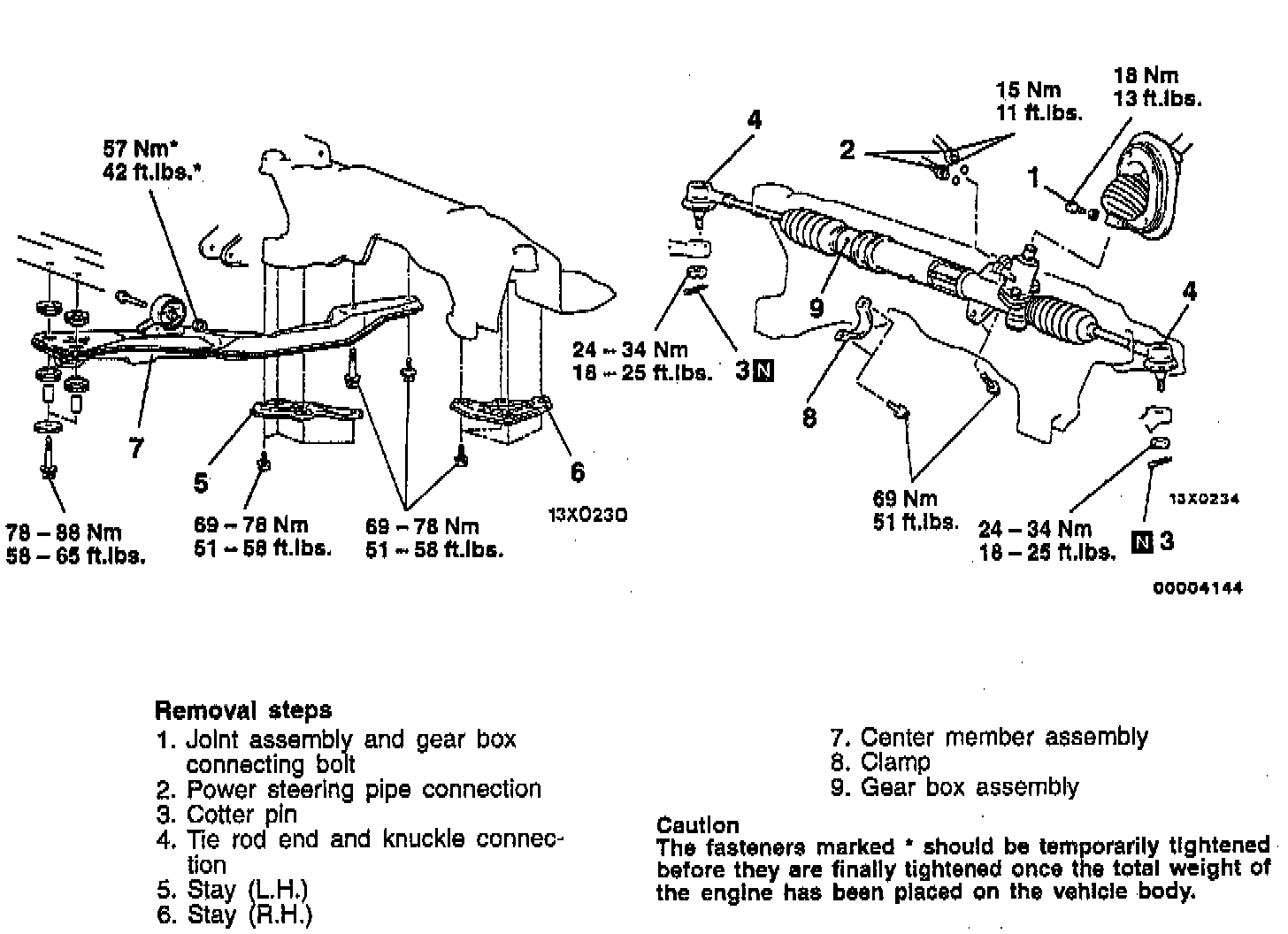 c. Remove the connection between the gear box assembly and joint assembly, and remove the gear box assembly from the crossmember at the left side.