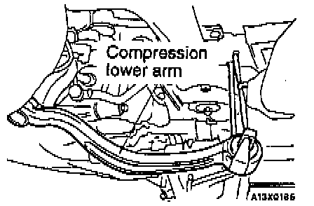CAUTION: The compression lower arm should be suspended so that undue force is not applied to the ball joint.