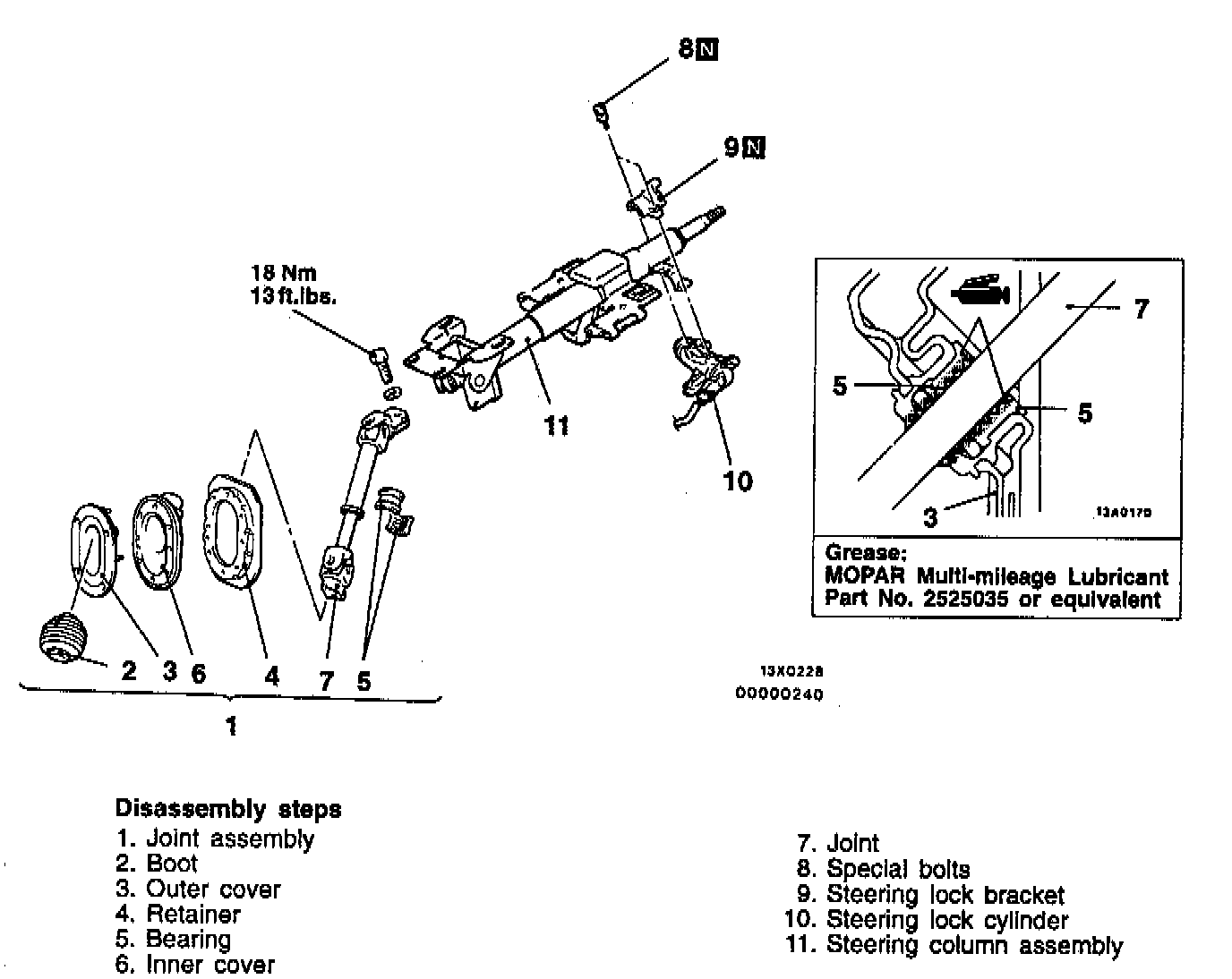 CAUTION: The steering lock bracket and bolts must be replaced with new ones when the steering lock is installed.
