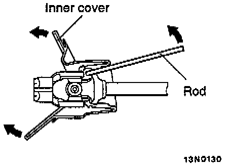 5. While using the rod to widen the inner cover from behind, pull the cover to remove it from the joint.