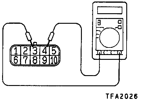 2. Measure the resistance between terminals 3 - 4 and check that the values are as shown in the table below.