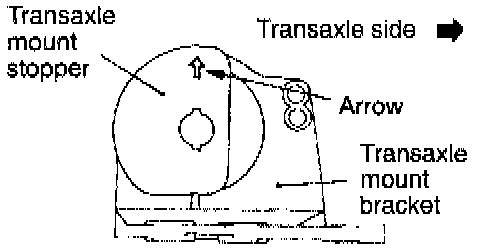 Clamp the transaxle mount stopper so that the arrow points in the shown direction.