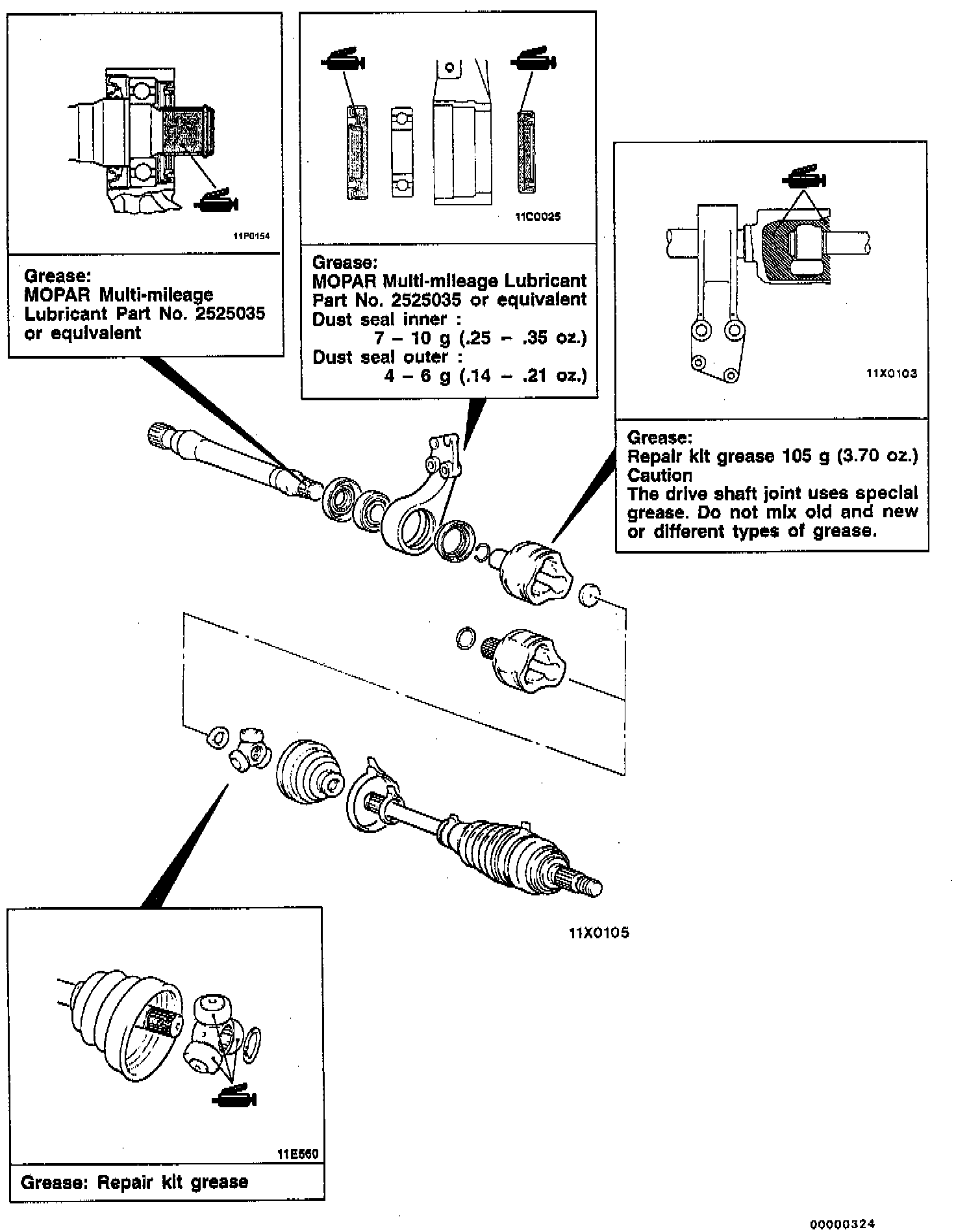 - The drive shaft joint uses special grease. Do not mix old and new or different types of grease.