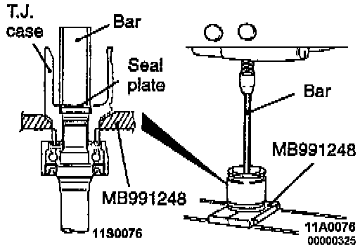 2. Use the special tool to remove the inner shaft assembly, together with the seal plate, from the T.J. case.