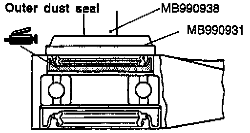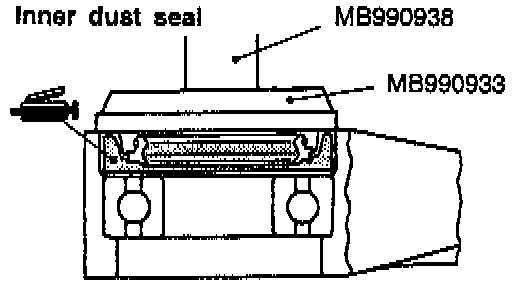 7. Use the special tools to install the dust seal so that its surface runs even with that of the center bearing bracket.