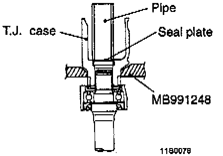 12. Use a pipe with a diameter of 30 mm (1.18 inch) to press the seal plate into the T.J. case.