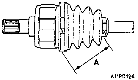 1. Install the dynamic damper in the position shown in the illustration (A) for the right side is 374 +/-3 mm (14.72 +/-0.12 inches) and 194 +/-3 mm (7.64 +/-0.12 inches) for the left side with manual transmission.