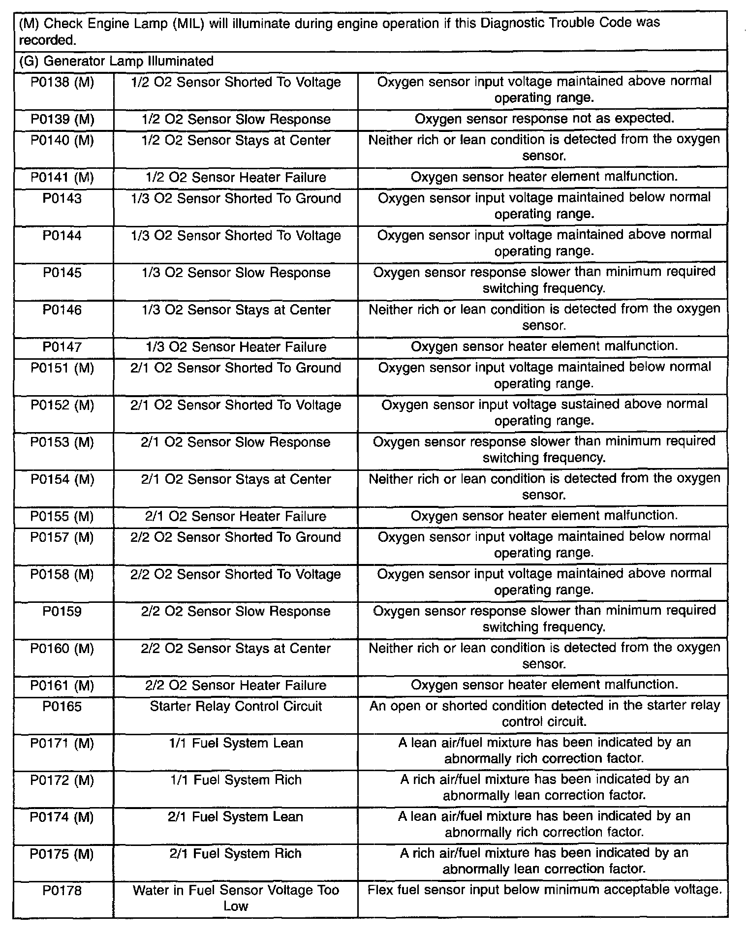 Diagnostic Trouble Code Descriptions (P0138 (M) To P0178):