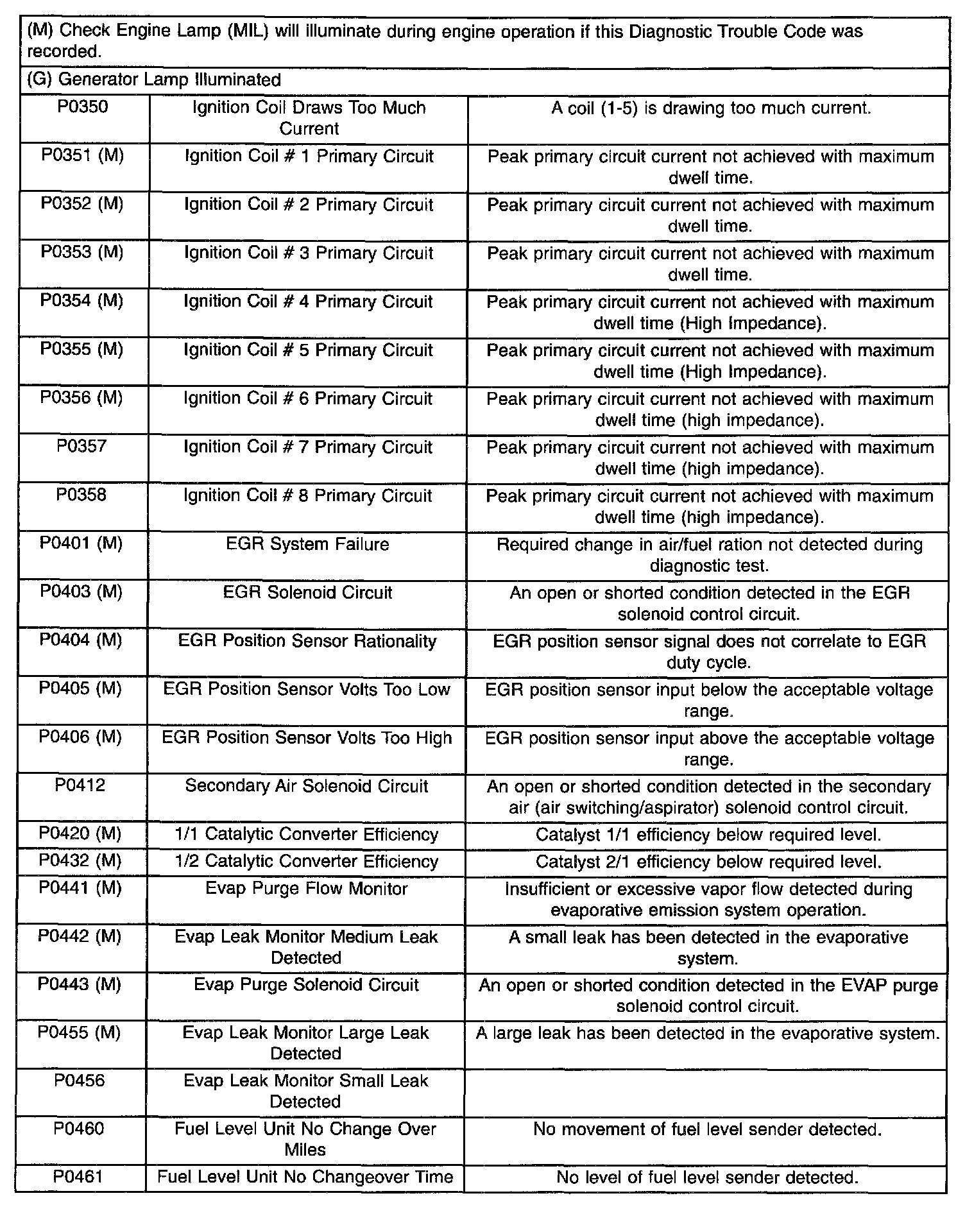 Diagnostic Trouble Code Descriptions (P0350 To P0461):