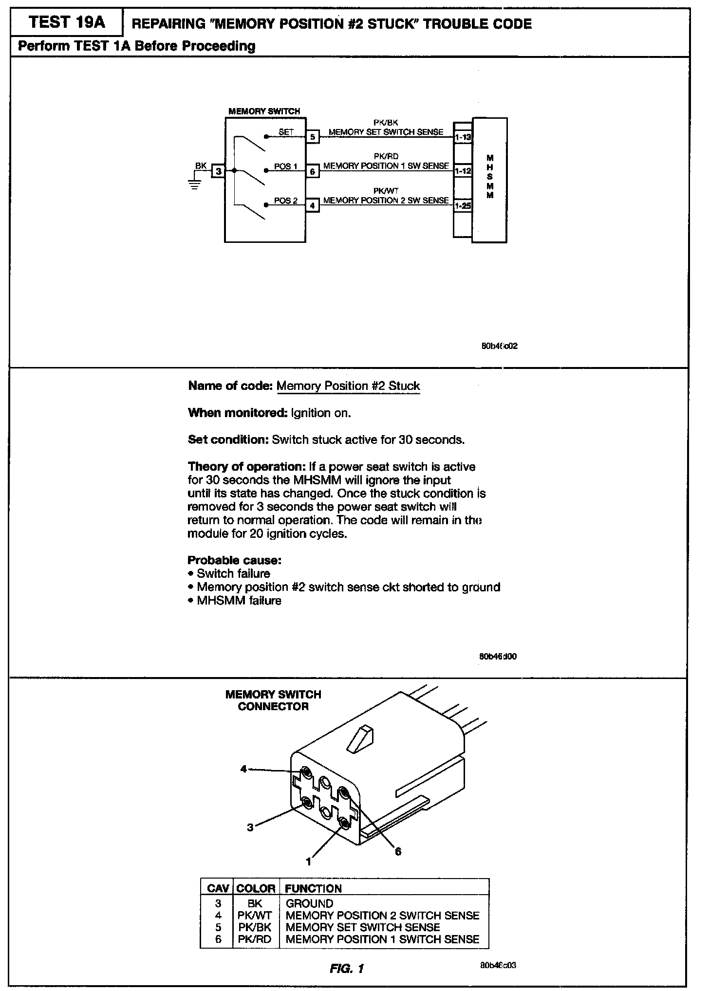 19A Memory Position #2 Stuck Trouble Code