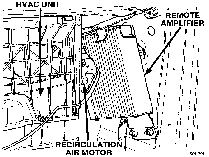 The amplifier is located beneath the trunk liner covering the right quarter inner panel.