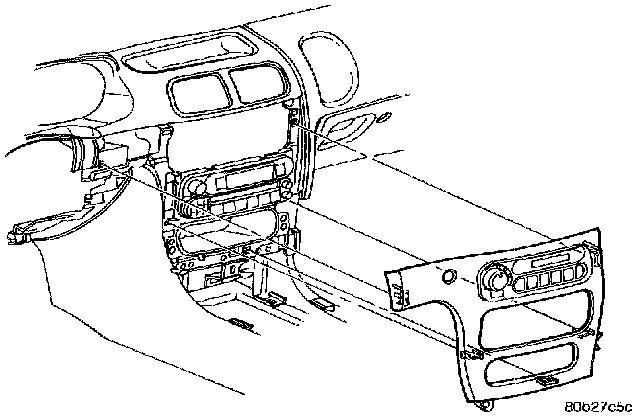 3. Remove the instrument panel center trim bezel and remove the two electrical connectors from the back of the control head. Instrument Panel Center Trim Bezel