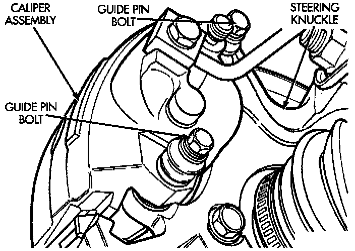 CAUTION: When being installed, extreme caution should be taken not to cross-thread the caliper guide pin bolts.