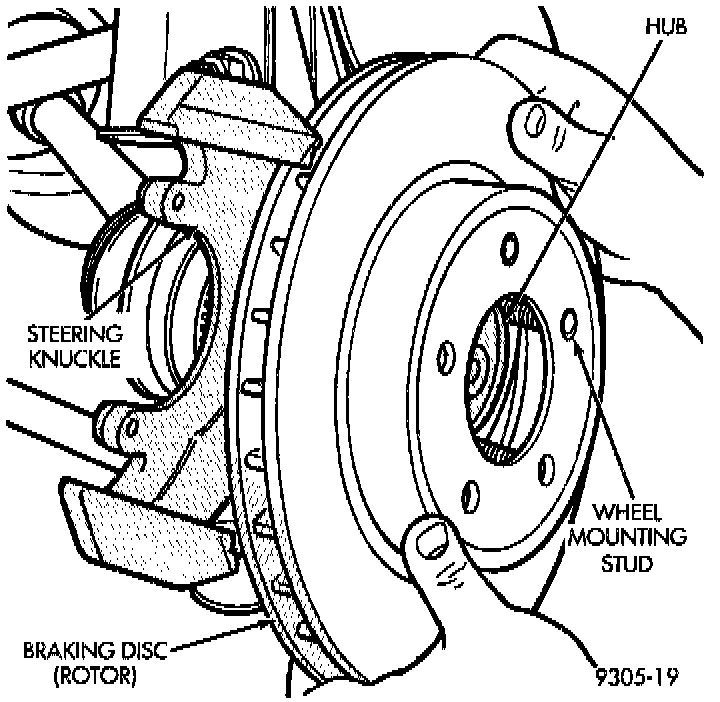 7. If required, remove rotor from hub by pulling it straight off wheel mounting studs.