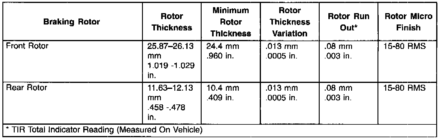 NOTE: All rotors have markings for minimum allowable thickness cast on an un-machined surface of the rotor.