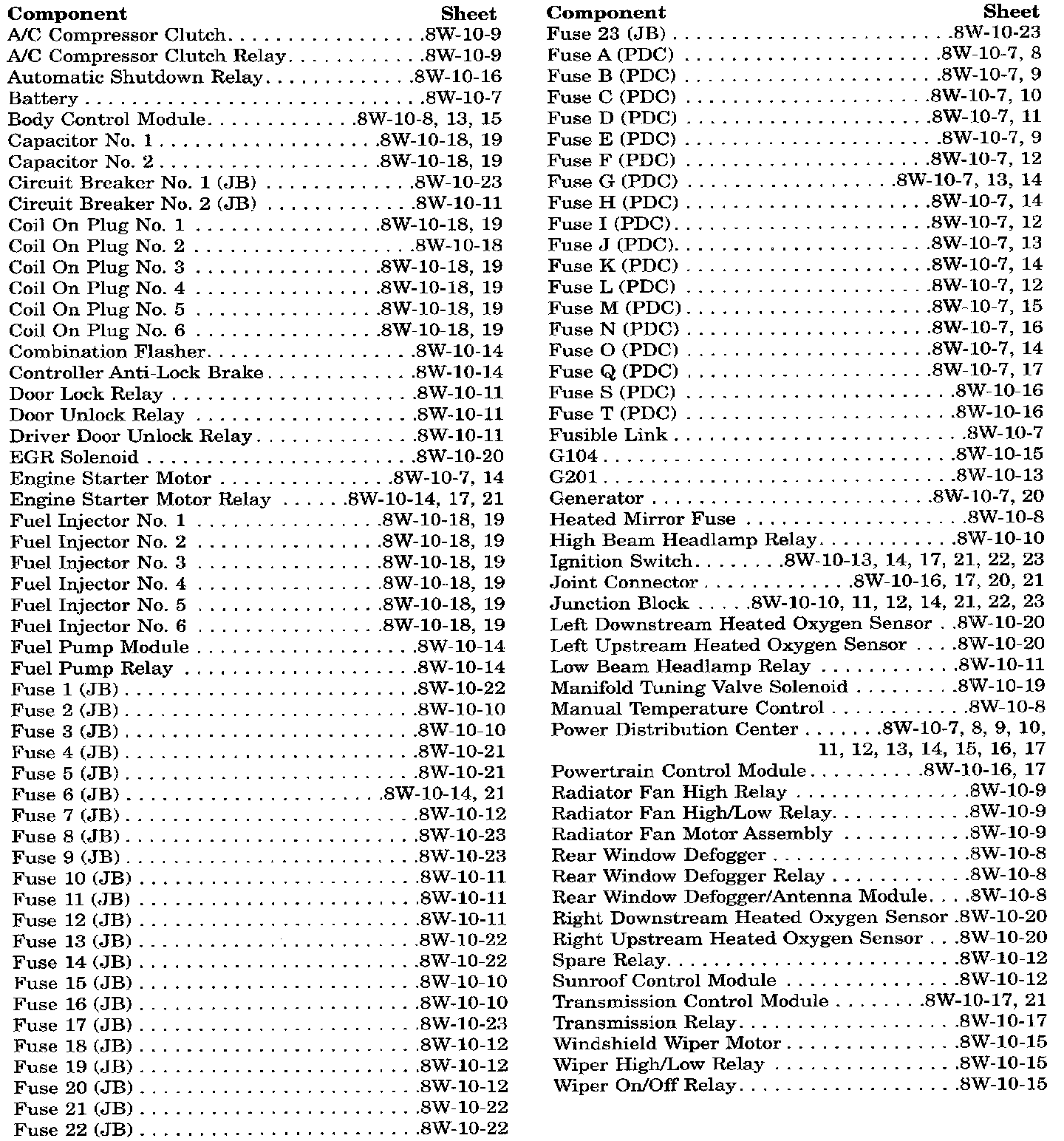 Power Distribution Component Index: