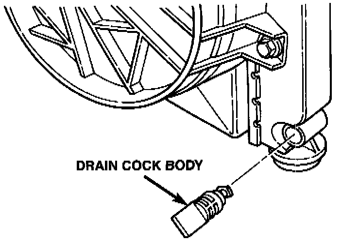 1. Turn the draincock stem counterclockwise to unscrew the stem. When the stem is unscrewed to the end of its threads, turn back 1/8 turn and pull the stem from the radiator tank.