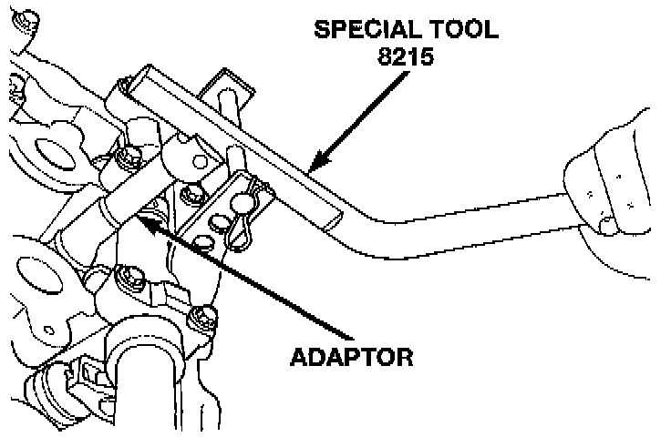 3. Using Special Tools 8215 and 8216 Adaptor, depress valve spring only enough to release tension on rocker arm.