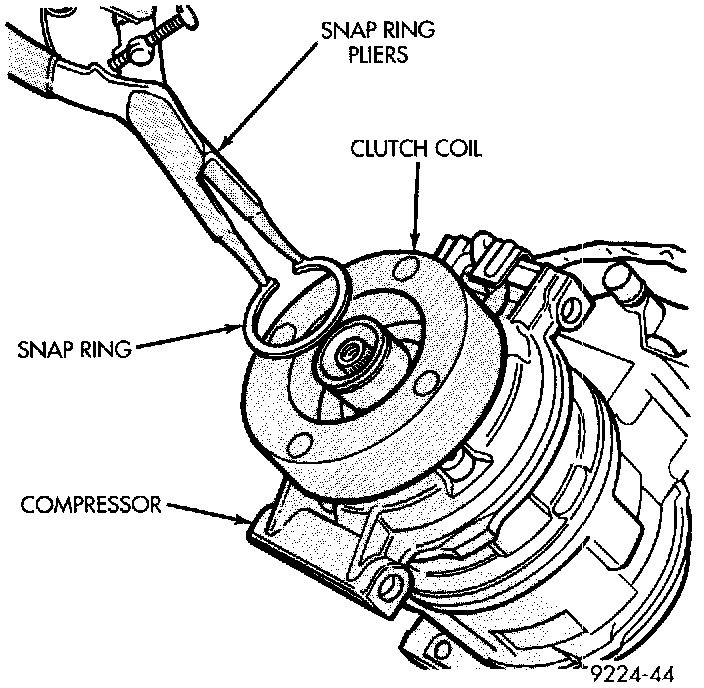 5. Remove snap ring retaining field coil onto compressor housing. Slide field coil off of compressor housing.