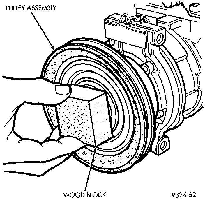 3. Install pulley assembly to compressor. If necessary, tap gently with a block of wood on the friction surface.