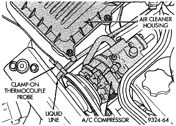 2. Attach a clamp-on thermocouple (P.S.E. 66-324- 0014 or 80PK-1A) or equivalent to the liquid line. It must be placed as close to the condenser outlet as possible to observe liquid line tubing temperature. Refer to "Thermocouple Probe" for more information on probe.