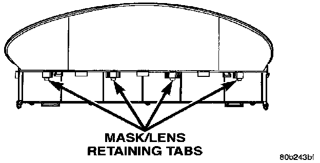 4. Unsnap seven retaining tabs holding mask/lens to cluster housing.