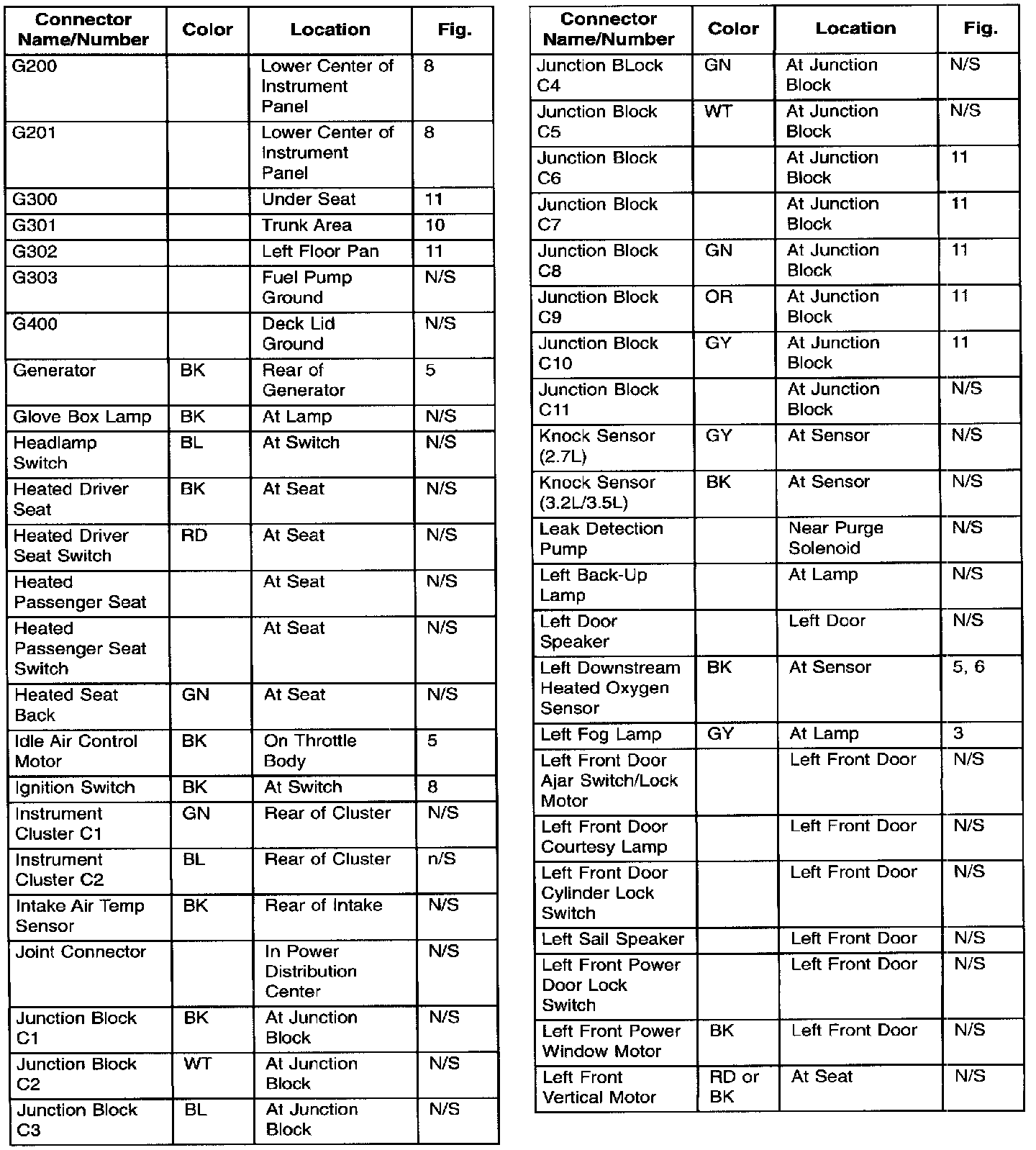 Connector/Ground Locations Component Index: