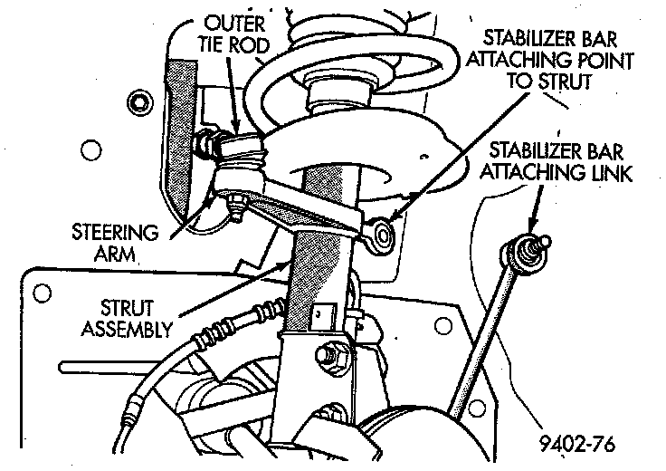 14. Install stabilizer bar attaching link on strut. Tighten the stabilizer bar attaching link nut to a torque of 88 Nm (65 ft. lbs.).