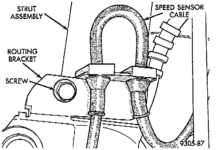 7. If vehicle is equipped with antilock brakes, remove the routing bracket for the wheel speed sensor cable from the strut.
