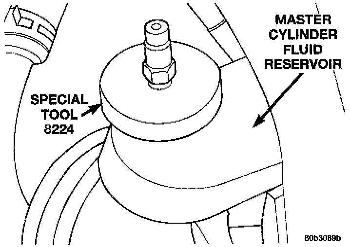 CAUTION: Use bleeder tank Special Tool C-3496-B or equivalent, with adapter Special Tool 8224 or equivalents to pressurize the brake hydraulic system for bleeding.