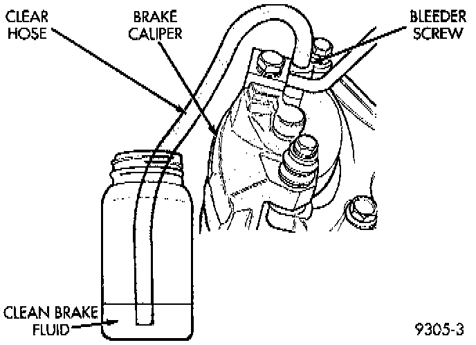 4. After 4 to 8 ounces of brake fluid has been bled through an individual wheel's brake hydraulic system. And an air-free flow (no bubbles) is maintained in the clear plastic hose and jar, this will indicate a good bleed of this individual hydraulic circuit.