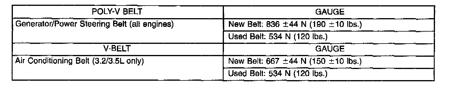 Use belt tension gauge, Special Tool 7198 for conventional V-belts and Poly-V belts.