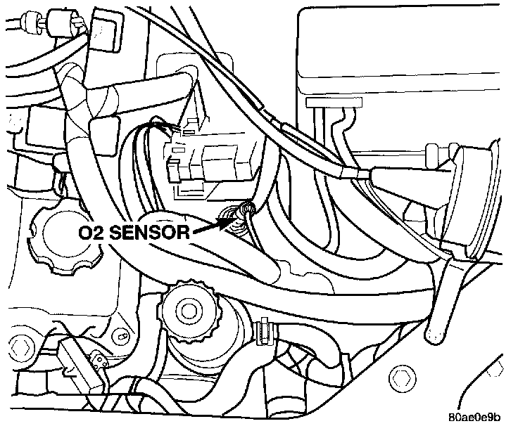 The upstream oxygen sensor threads into the outlet flange of the exhaust manifold (Fig. 11) or (Fig. 12).