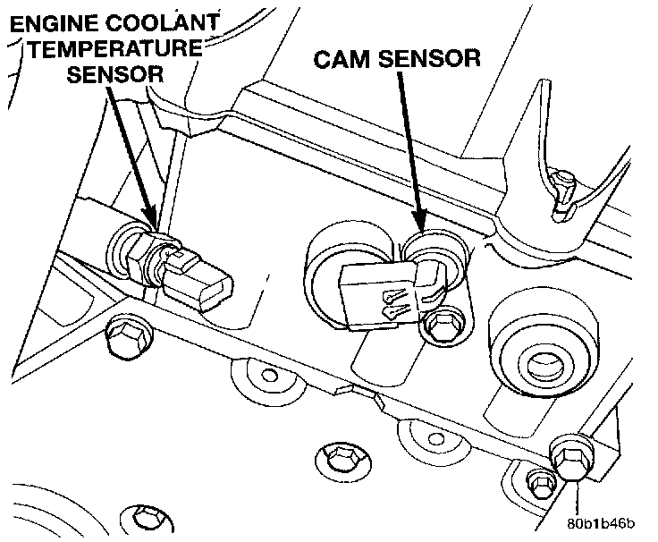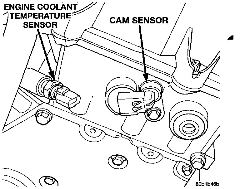 The engine coolant temperature sensor threads into the water jacket near the thermostat housing (Fig. 9). The sensor provides an input to the Powertrain Control Module (PCM). As coolant temperature varies, the sensor resistance changes, resulting in a different input voltage to the PCM.