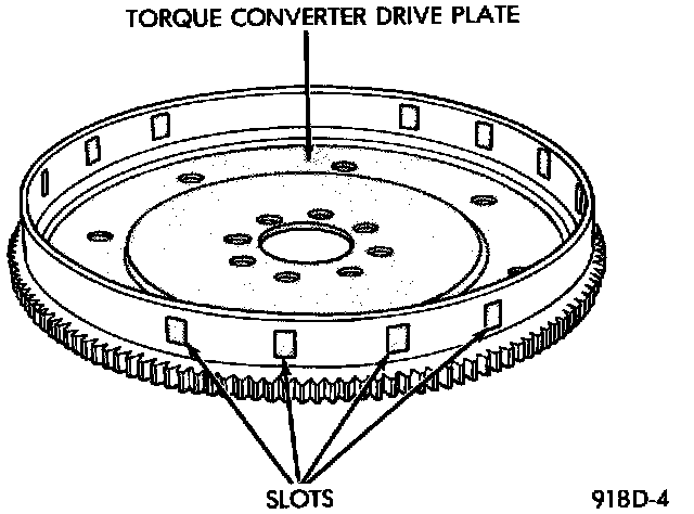 The crankshaft position sensor detects slots cut into the transmission driveplate extension. There are a 3 sets of slots. Each set contains 4 or 5 slots, for a total of 13 slots (Fig. 7). Basic timing is set by the position of the last slot in each group. Once the Powertrain Control Module (PCM) senses the last slot, it determines crankshaft position (which piston will next be at TDC) from the camshaft position sensor input. The 4 pulses generated by the crankshaft position sensor represent the 69°, 49°, 29°, and 9° BTDC marks. It may take the PCM one engine revolution to determine crankshaft position.