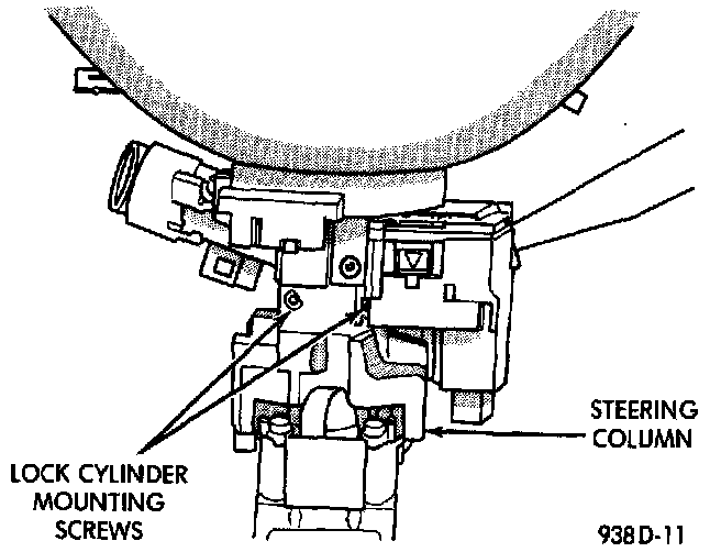 The lock cylinder housing attaches to the steering column with tamper-proof screws and hardened washers.