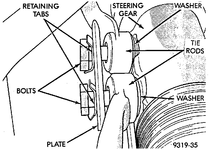 CAUTION: After tie rod attaching bolts are torqued, bend attaching bolt retaining tabs against heads of attaching bolts.